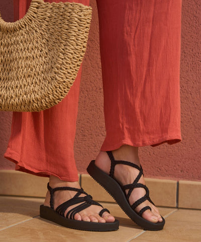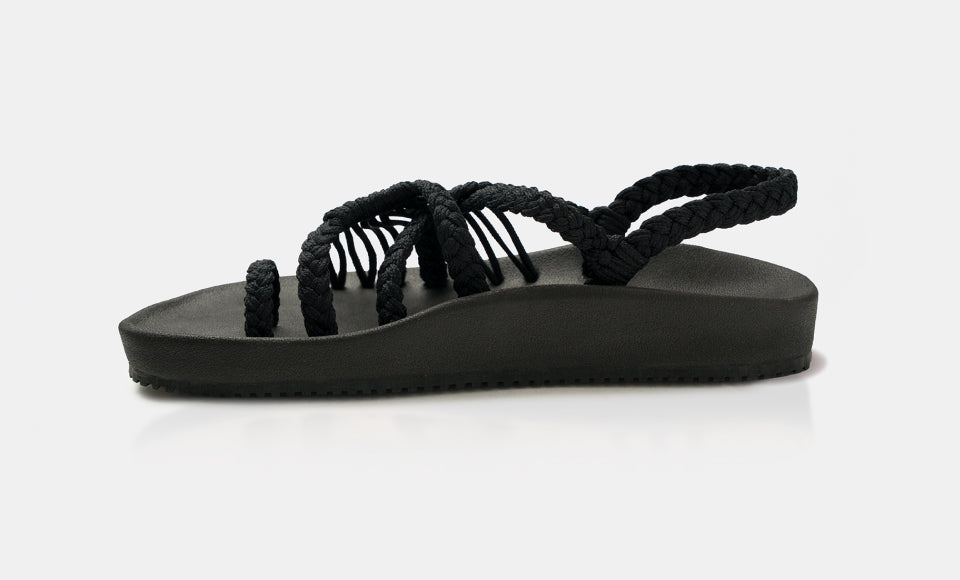 Add a touch of timeless elegance to any outfit with our Elevate Black sandals. This pair of stylish arch support sandals will work its way into your heart with its intricate braided straps and a deep black hue that complements any occasion.