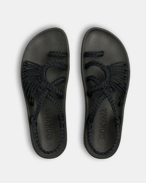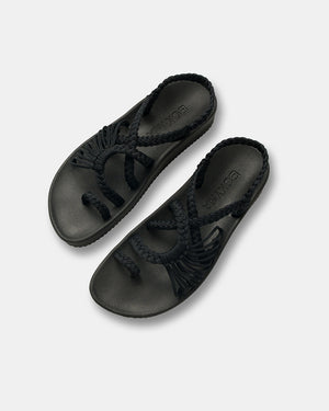Add a touch of timeless elegance to any outfit with our Elevate Black sandals. This pair of stylish arch support sandals will work its way into your heart with its intricate braided straps and a deep black hue that complements any occasion.
