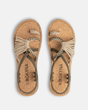 Get into that beachy mood in any season with our Soulmate Bokyna sandals in the color of warm, toasty sand, complete with dark cork sole-the most beautiful blend of neutral tones to channel the summer season.