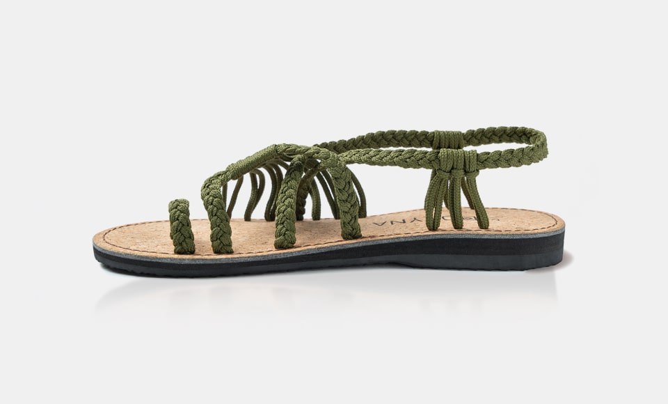 Nothing is more beautiful than the Mediterranean in the warm season. Embrace the beauty of living the simple life out in the sun with our Soulmate sandals in a color to match the mood, eye-catching olive with a dark cork sole.